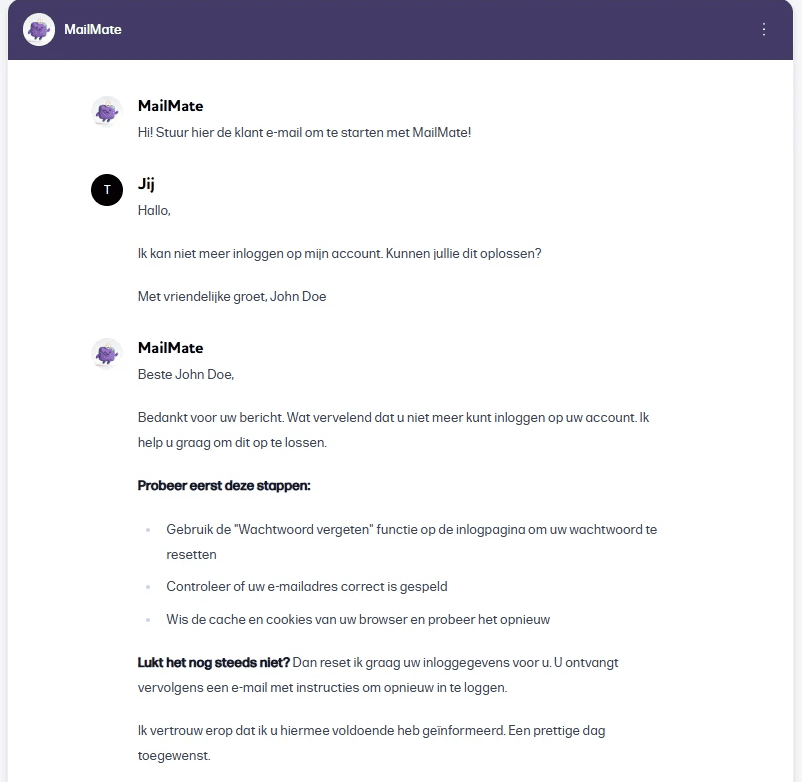 Voorbeeld MailMate assistant